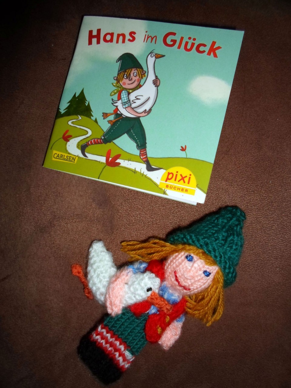 Das Set besteht aus einer Fingerpuppe mit herausnehmender Gans und einem Pixibuch